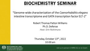 Defense – “Genome-wide characterization of the Caenorhabditis elegans intestine transcriptome and GATA transcription factor ELT-2”